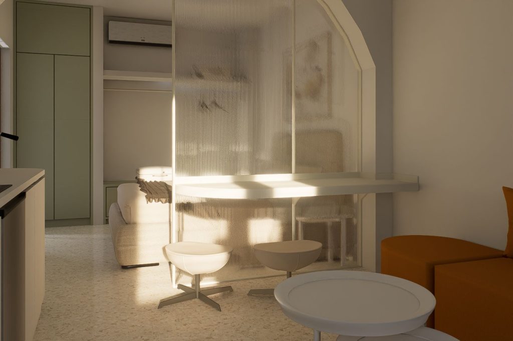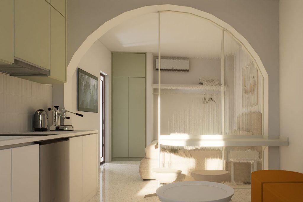 Το γραφείο μας ανελαβε τoν σχεδιασμό και την υλοποίηση μετατροπής ενός ισόγειου καταστήματος σε κατοικία στην περιοχή της Νέας Χώρας στα Χανιά. Σκοπός του σχεδιασμού του έργου είναι να διαχέει το φως που εισέρχεται από το άνοιγμα στη βόρεια όψη στο συνολο του χώρου, ενώ παραλληλα διατηρείται μια λειτουργική διαφοροποίηση έκαστης χρήσης σε μια κάτοψη συνολικής επιφάνειας 27,00 τ.μ.!